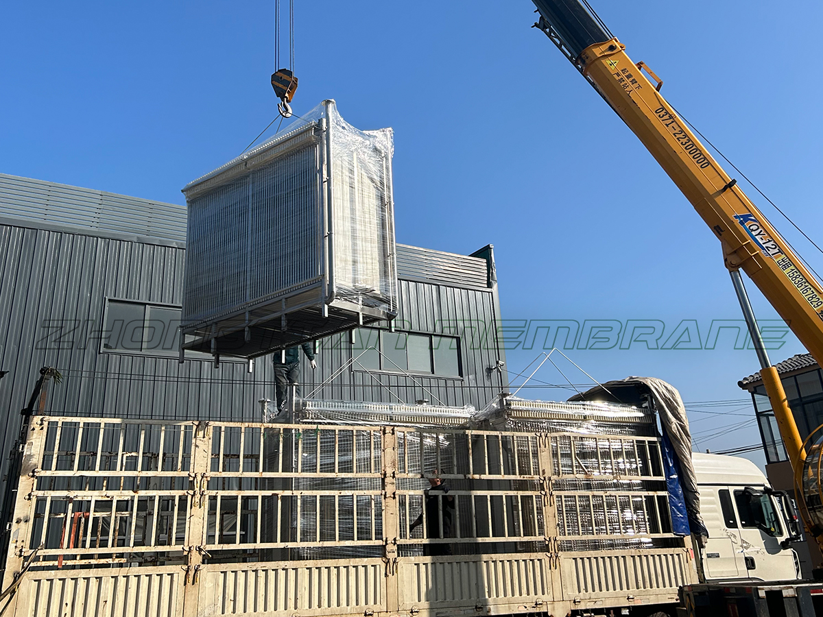 二零二三,新年伊始。  元旦剛過,廠門口滿地的紅屑還未來及打掃,一陣轟鳴聲傳來,一輛平板大貨車緩緩駛入中天膜廠區。    本次發貨的產品為柱式超濾膜組、RO一級反滲透膜組以及配套的反清洗模塊。從設計方案至裝車發貨,中天膜應客戶需求,保質保量的前提下加緊生產,如期發貨完成!